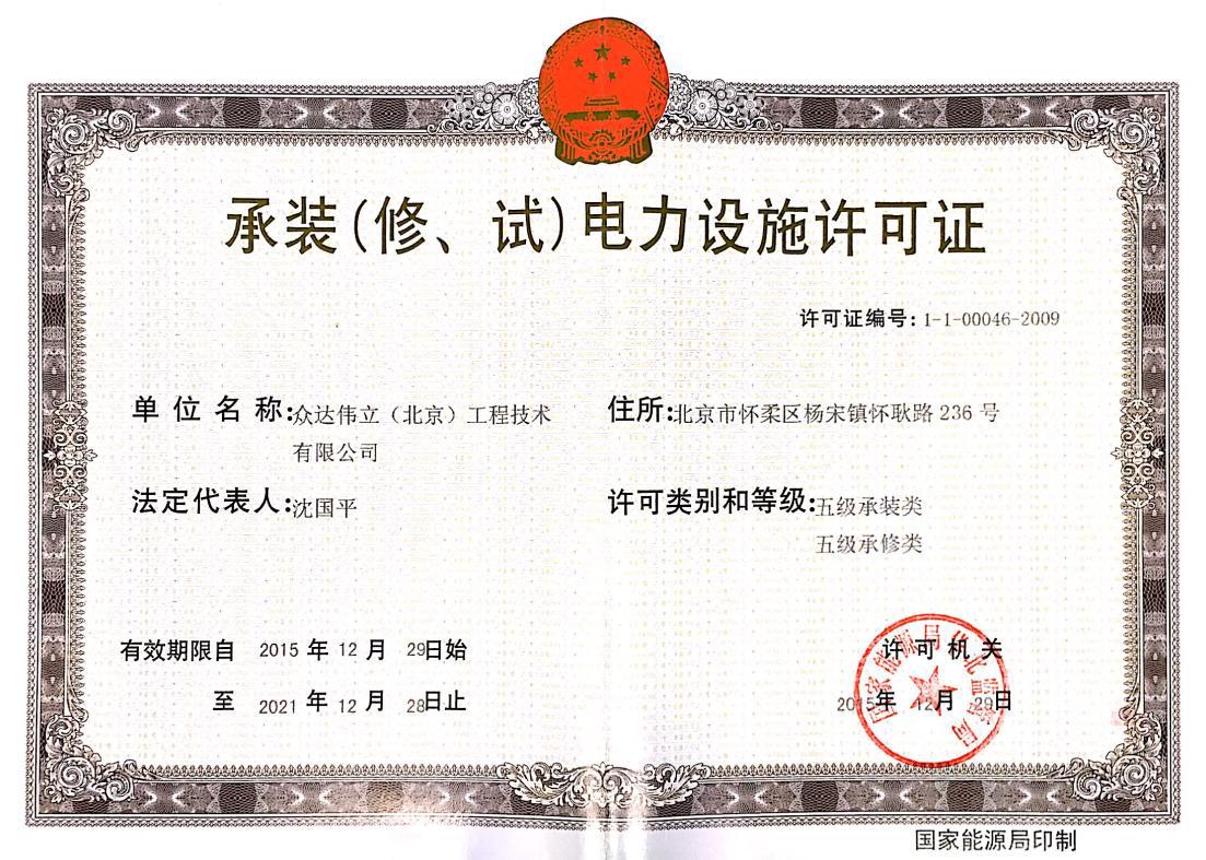 • 承装(修、试)电力设施许可证